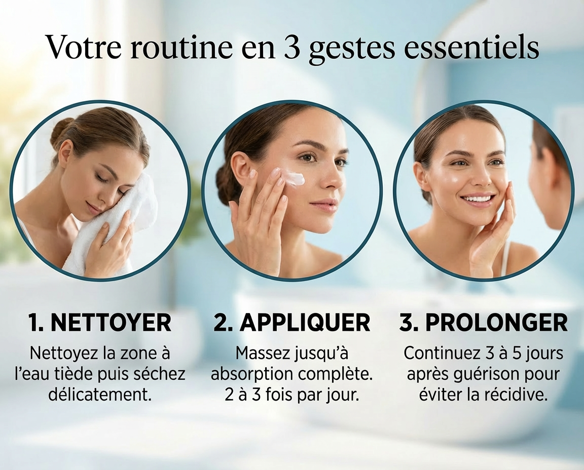 - Poursuivre l’application quelques jours après amélioration afin de prolonger l’apaisement.