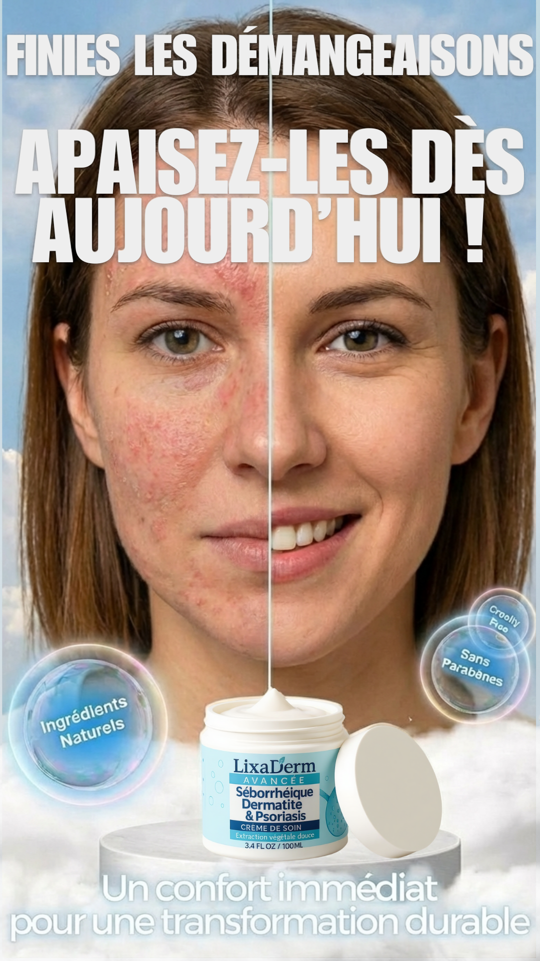 Dites adieu aux démangeaisons, rougeurs et plaques persistantes.