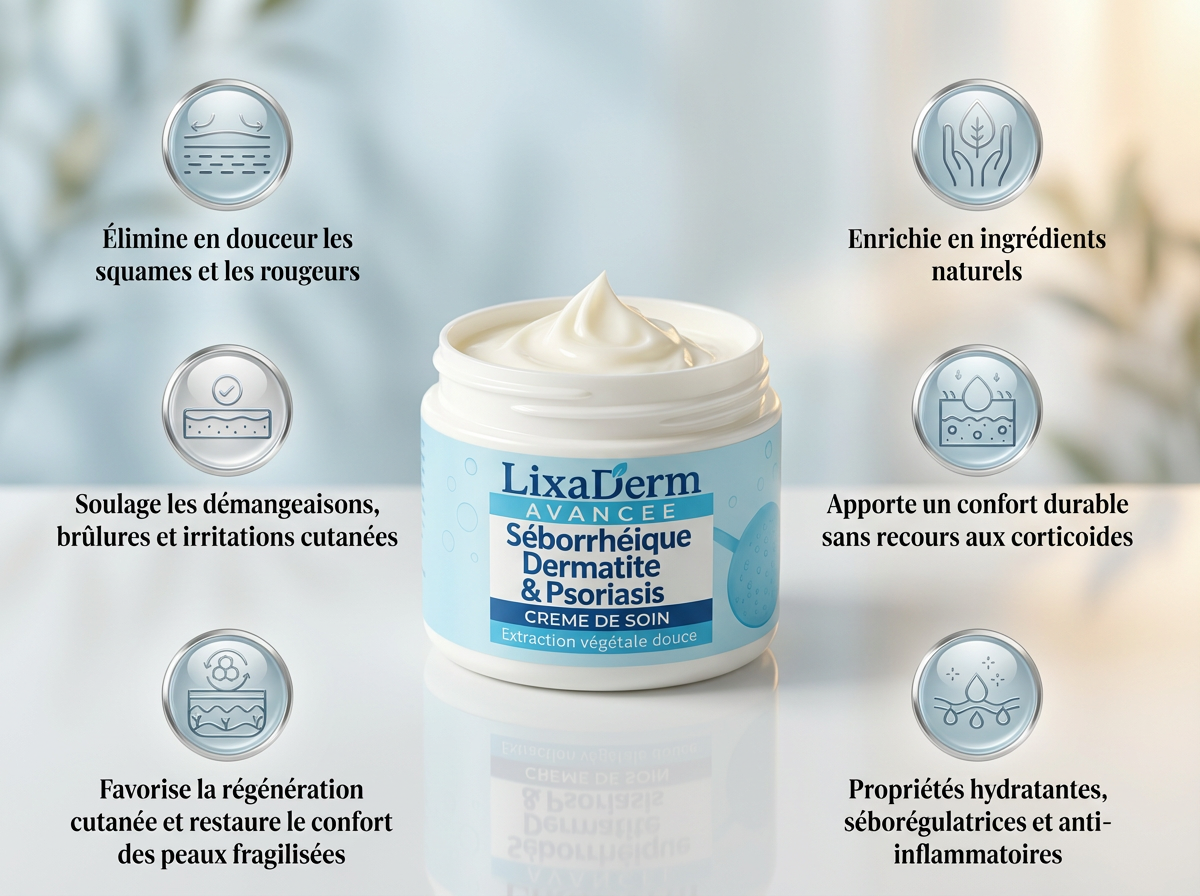 LixaDerm® est un soin apaisant avancé, spécialement formulé pour soulager les démangeaisons, rougeurs, squames et irritations liées à l’eczéma, au psoriasis ou à la dermatite.